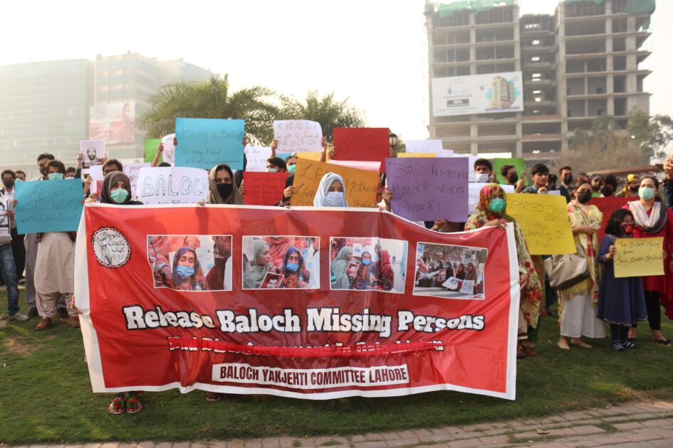 پنجاب کے دارالحکومت لاہور میں بلوچ یکجہتی کمیٹی کی اپیل پر پاکستان کے دارالحکومت اسلام آباد میں گذشتہ نو روز سے جاری بلوچ لاپتہ افراد کے لواحقین کے لواحقین سے اظہارِ یکجہتی کے لیے لاہور میں مظاہرہ کیا گیا۔