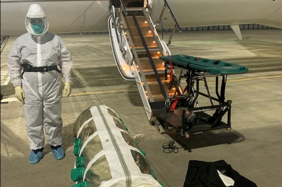 ’وزارت دفاع کے تحت ہیلتھ سروسز کا طیارہ پندرہ گھنٹے کی پرواز کے بعد پیر کی رات ریاض کے کنگ سلمان ایئر فورس بیس پہنچا ہے۔ کورونا وائرس کے پھیلاو کو روکنے کےلیے تمام احتیاطی اقدامات کئے گئے تھے‘۔