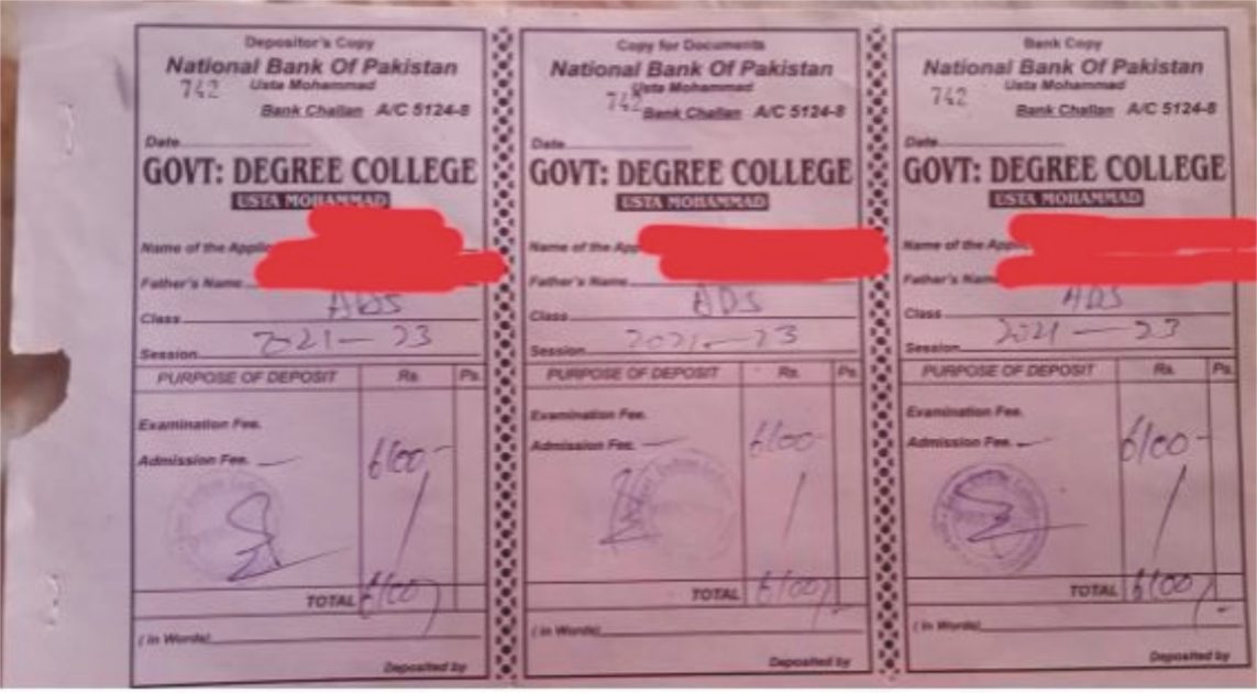 اوستہ محمد، بی اے بی ایس سی کی اصل فیس 1800جبکہ 6100وصول کی گئی