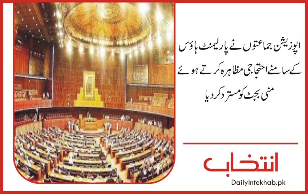اپوزیشن جماعتوں نے پارلیمنٹ ہاؤس کے سامنے احتجاجی مظاہرہ کرتے ہوئے منی بجٹ کو مسترد کردیا