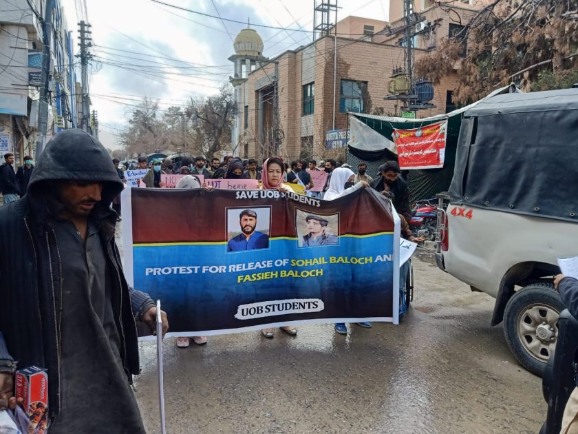 کوئٹہ: (انتخاب نیوز) لاپتہ طلباء کی بازیابی کیلئے احتجاجی مظاہرہ۔ بلوچ اسٹوڈنٹس الائنس کے زیر اہتمام گزشتہ سال جامعہ بلوچستان کے احاطے سے لاپتہ طالب علموں سہیل بلوچ اور فصیح اللہ بلوچ کی بازیابی کیلئے احتجاجی مظاہرہ کیا گیا۔ جس میں کثیر تعداد میں طالب علموں نے شرکت کی۔ مقررین نے کہا کہ حکومت کے ساتھ مذاکرات کے باوجود لاپتہ طلباء کو بازیاب نہیں کیا جا سکا جو حکومت کی بے بسی کی انتہا ہے جبکہ طلباء کی زندگیوں کے ساتھ کھیلنے کے مترادف ہے۔ مقررین نے کہا کہ لاپتہ طالب علموں کی بازیابی کیلئے گزشتہ تین مہینوں سے یونیورسٹی کے طالب علم احتجاج کر رہے ہیں مگر بدقسمتی سے اب تک لاپتہ طلباء کو بازیاب نہیں کیا جا سکا ہے جو لمہ فلریہ ہے۔ طلباء نے حکومت اور متعلقہ زمہ داران سے طلباء کی باحفاظت بازیابی کیلئے اقدامات اٹھانے کا مطالبہ کیا۔