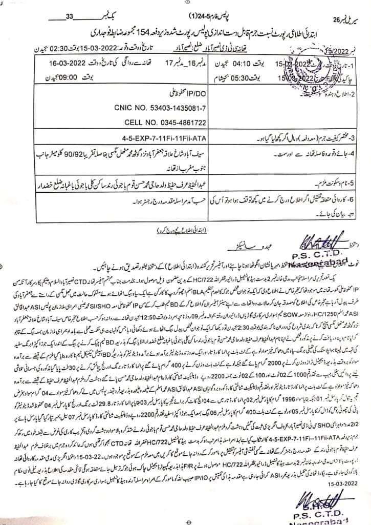 کوئٹہ (انتخاب نیوز) قائد اعظم یونیورسٹی کے طالب علم لاپتا حفیظ بلوچ کیخلاف سی ٹی ڈی کی مدعیت میں انسداد دہشت گردی کے مقدمات قائم کرلیے۔ سی ٹی ڈی نے دعویٰ کیا ہے کہ حفیظ بلوچ کو سیف آباد شاخ علاقہ جعفر آباد نزد گوٹھ محمد مٹھل مگسی سے مخبر کی اطلاع پر 14 اور 15 مارچ کی درمیانی شب گرفتار کیا گیا۔ حفیظ بلوچ پر تھانہ سی ٹی ڈی نصیر آباد میں انسداد دہشت گردی ایکٹ کے تحت مقدمہ درج کرلیا گیا۔ مقدمے میں حفیظ بلوچ کو بی ایل اے کا کا کارکن بتایا گیا ہے۔ مقدمے میں حفیظ بلوچ سے اسلحہ اور گولہ بارود برآمد کرنے کا دعویٰ کیا گیا ہے۔ واضح رہے کہ رواں سال 8 فروری 2022 ءکو خضدار سے قائداعظم یونیورسٹی کے ایم فل اسکالر اور باغبانہ خضدار سے تعلق رکھنے والے حفیظ بلوچ کو ایک نجی اکیڈمی سے نامعلوم افراد نے جبری طور پر لاپتہ کیا تھا جس کی رہائی کےلیے ملک گیر احتجاج سمیت ملک کے دارالحکومت اسلام آباد میں علامتی بھوک ہڑتالی کیمپ بھی لگایا گیا تھا۔