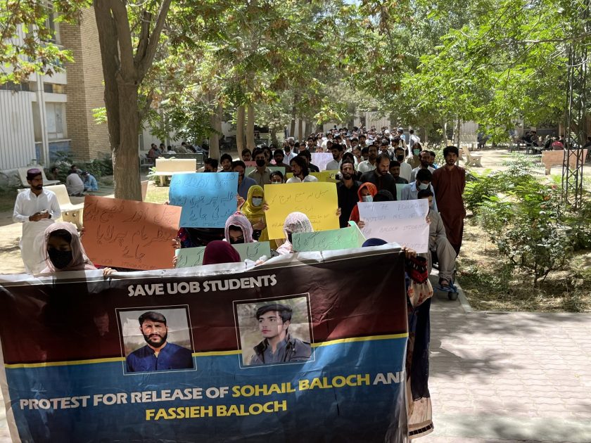 لاپتہ فصیح بلوچ اور سہیل بلوچ کی عدم بازیابی کیخلاف جامعہ بلوچستان میں احتجاجی ریلی