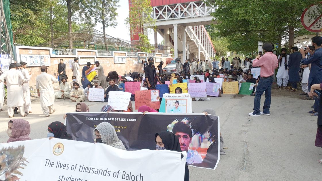 فیروز بلوچ کی جبری گمشدگی کیخلاف ایرڈ یوینورسٹی کے باہر طلبہ کی پرامن ریلی اور دھرنا