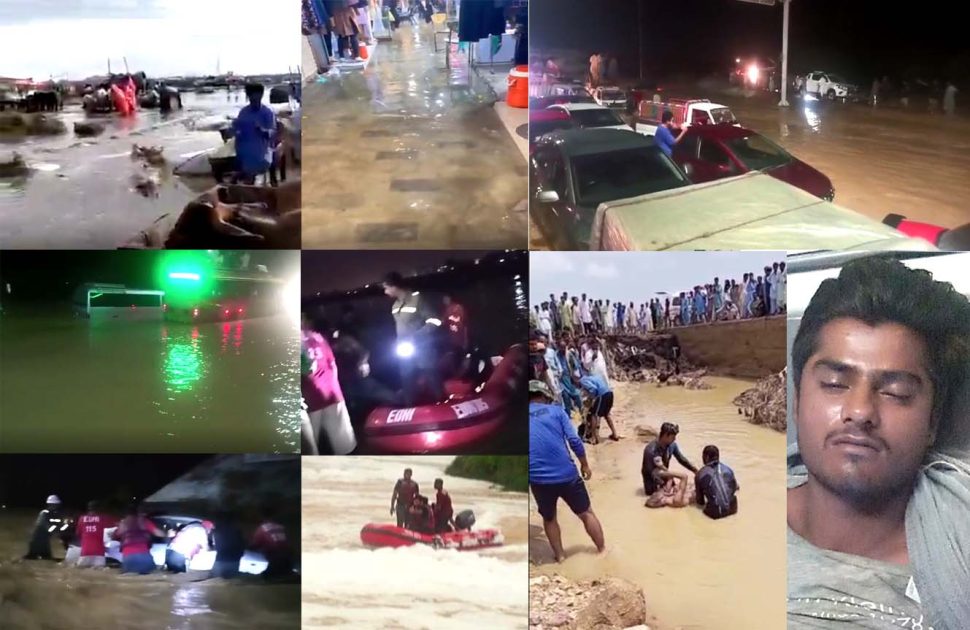 تیسرے روز بھی تیز بارش، گڈاپ، تھدو ڈیم اوورفلو، سعدی ٹائون میں سیلاب،ایدھی بحری خدمات ٹیم سرگرم