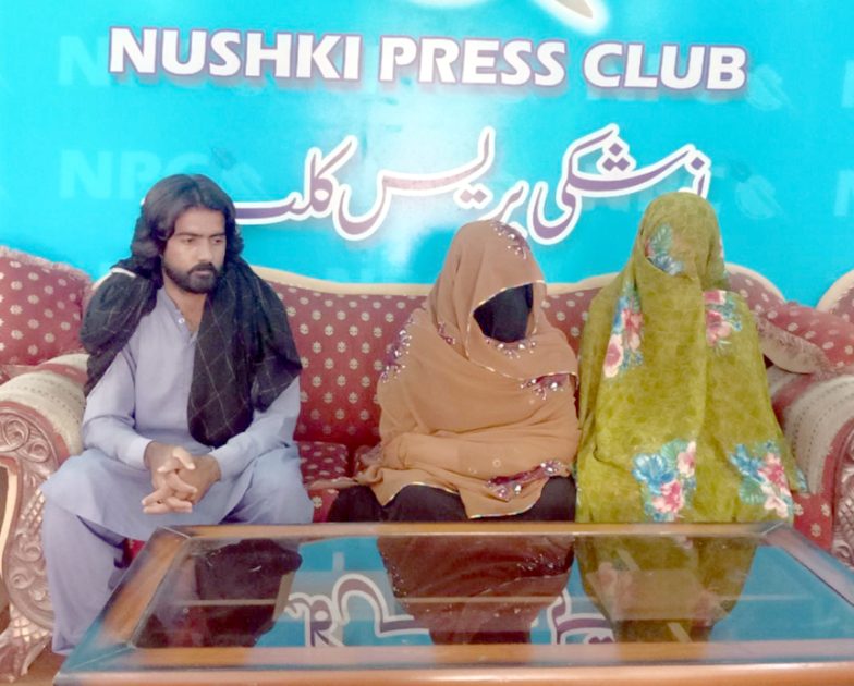 نوشکی (نامہ نگار) نوشکی تاڑیز کلی محمد یوسف بادینی کے رہائشی خواتین رحیمہ بلوچ، ریحانہ بلوچ ا ور آدم خان بادینی نے پریس کلب میں پریس کانفرنس سے خطاب کرتے ہوئے الزام لگایا کہ ممتاز دین بڑیچ نامی شخص نے مل اڈہ میں ہماری ویڈیو بنا کر ہمیں بلیک میل کرنے کی کوشش کی اور دھمکیاں دیتا تھا اگر تم نہیں آئے تو میں تمہاری ویڈیو وائرل کرونگا، ہم ٹیچنگ ہسپتال کے قریب سے گزر رہے تھے تو ممتاز دین بڑیچ نے مجھے کہا میرے ساتھ گاڑی میں بیٹھو میں تمہاری وڈیو ڈیلیٹ کرونگا وہ اپنی گاڑی میں ہمیں بٹھا کر اپنے گھر لے آیا، میں نے اپنے بھائیوں کو صورت حال سے آگاہ کیا تو میرے بھائی فوری طور پر انکے گھر پہنچ گئے اور دیوار پھلانگ کر اندر داخل ہوئے، میرے بھائیوں نے ممتاز دین بڑیچ کے ہاتھ باندھ دیے۔ انھوں نے اپنی اس حرکت پر معافی اور اللہ کا واسطہ دیکر معاملہ رفع دفع کرنے کی منت سماجت کی جس پر میرے بھائیوں نے اسے چھوڑ دیا جس کی وڈیو بھی صحافیوں کو دکھائی لیکن بعد میں پولیس میں اغوا کی جھوٹی ایف آئی آر درج کرا کر 60 لاکھ روپے تعاون کا ڈرامہ رچا کر پولیس نے ہمارے گھر پر چھاپہ مارکر کر چادر اور چار دیواری کی پامالی کرتے ہوئے ھمارے گھر سے 10 لاکھ روپے بھی غائب کردئیے ا ور میرے تین بھائیوں کو اغوا کے جھوٹے کیس میں گرفتار کرلیا ا ور ہمارے چار مہمانوں کو پولیس اپنے ساتھ لے گئی۔ انہوں نے کہا کہ ہمیں انصاف دلایا جائے ہم وزیراعلیٰ بلوچستان، کور کمانڈر، چیف سیکرٹری بلوچستان، کمشنر رخشان ڈویژن سے اپیل کرتے ہیں کہ ہمیں انصاف دلایا جائے ا ور میرے بھائیوں کو فوری طور پر رہا کیا جائے اور کیس ملوث افراد کے خلاف فوری کارروائی عمل میں لائی جائے۔