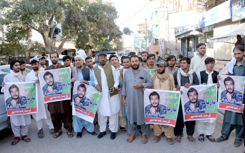 قبائلی رہنما کے بیٹے طیب خان ترین کے اغوا کیخلاف کوئٹہ پریس کلب پر احتجاجی مظاہرہ