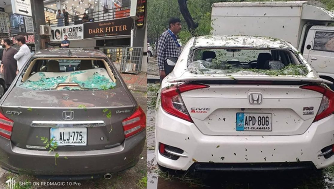 اسلام آباد میں شدید بارش اور ژالہ باری، متعدد گاڑیوں کے شیشے ٹوٹ گئے