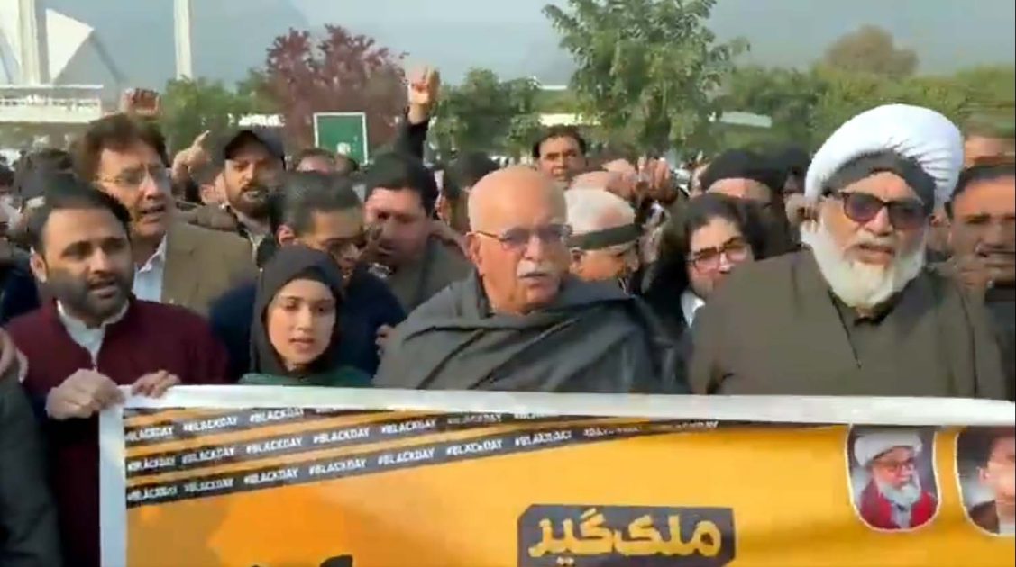 اسلام آباد (ویب ڈیسک) تحریک تحفظ آئین پاکستان کے سربراہ پشتونخوا میپ کے چیئرمین محمود خان اچکزئی اور تحریک کے دیگر قیادت کے سربراہی میں سینکڑوں لوگوں نے آج ملک گیر یوم سیاہ کے سلسلے میں فیصل مسجد اسلام آباد کے سامنے بعد از نماز جمعہ احتجاج ریکارڈ کرایا۔ تحریک تحفظ آئین پاکستان کے سربراہ پشتونخوا میپ کے چیئرمین محمود خان اچکزئی نے احتجاج سے خطاب کرتے ہوئے کہا کہ پاکستان میں جمہوری و غیر جمہوری قوتوں کے درمیان لڑائی شروع ہوچکی ہے۔ وہ دن آئے گا جب ہم سیڑھیاں لے کر جیل کی دیواروں سے کودیں گے اور عمران خان سے ملاقات کریں گے۔ زور سے اقتدار پر قابض مینڈیٹ چوروں نے پارلیمنٹ کو بانجھ بنا دیا ہے۔ پہلے صرف ہم کہتے تھے کہ یہ چوروں کی حکومت ہے اب تو ان کے ماما IMF نے بھی ان کو چور قرار دیا ہے کہ انہوں نے اربوں روپے کھائے ہیں۔