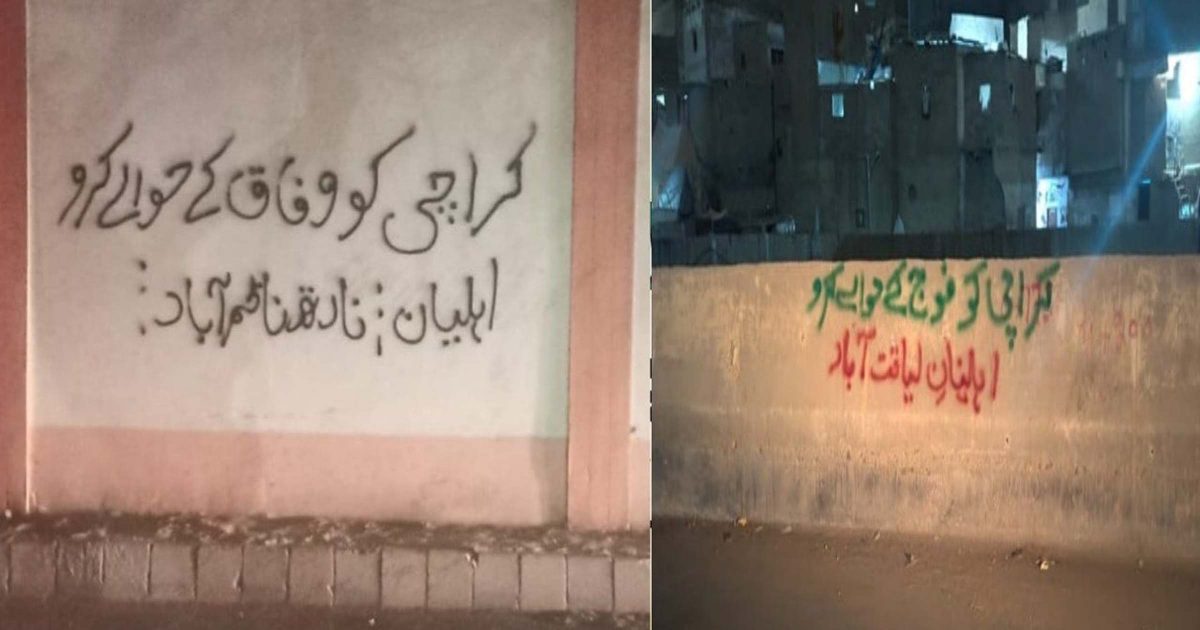 کراچی کو وفاق یا فوج کے حوالے کرنے کی وال چاکنگ، فوٹیج سوشل میڈیا پر وائرل