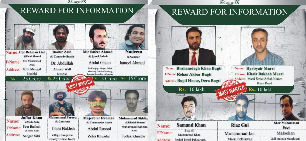 حکومت کا حیربیار مری اور براہمداغ بگٹی کے سر کی قیمت 10،10 لاکھ، کالعدم بی ایل اے کے بشیر زیب اور رحمان گل کے 25، 25 کروڑ روپے مقرر