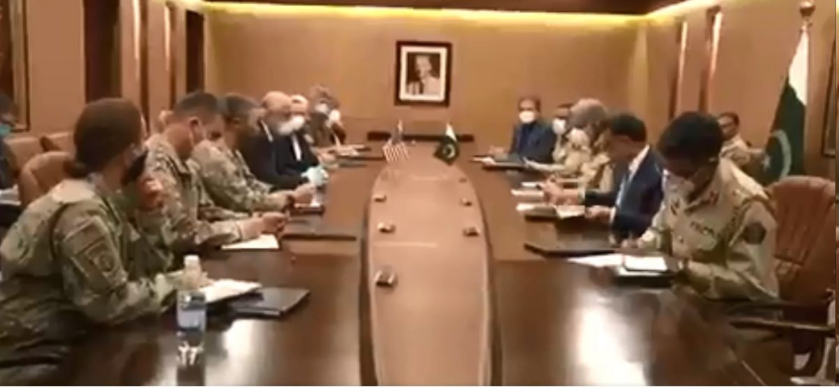آئی ایس پی آر کے مطابق ملاقات میں پاک افغان بارڈر منیجمنٹ اور افغان امن عمل میں پیش رفت پر بھی تبادلہ خیال کیا گیا، امریکی وفد نے افغان امن عمل میں پاکستان کے مثبت کردار کو سراہا۔