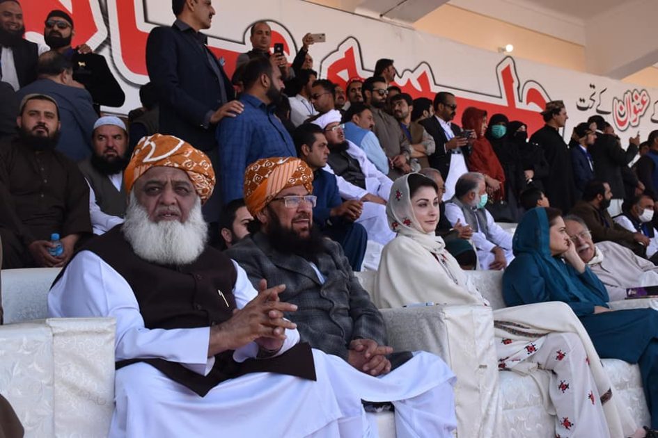مولانا فضل الرحمان نے کہا کہ آج چین اور سعودی عرب جیسے دوست ناراض ہو چکے ہیں۔ جب خزانے میں کچھ نہیں تھا تو سعودی عرب نے 3 ارب ڈالر بینکوں میں رکھے جبکہ موجودہ حکومت نے کہا کہ پاکستان سی پیک کا متحمل نہیں ہو سکتا۔ گیس پائپ لائن منصوبے کو بھی خاک میں ملا دیا گیا۔ آج افغانستان، ایران کو پاکستان سے دلچسپی نہیں ہے۔ ان میں شعور ہی نہیں، خارجہ پالیسی کیا ہوتی ہے۔ ہماری خارجہ پالیسی کا محور ہمیشہ کشمیر رہا ہے۔