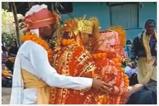 نئی دہلی :بھارتی ریاست ریاست چھتیس گڑھ کے ایک نوجوان نے ایک ہی تقریب میں دو لڑکیوں سے بیک وقت شادی کرکے سب کو ورطہ حیرت میں ڈال دیا ہے۔بھارتی ٹی وی کے مطابق اس شادی کی رسومات چار دن تک جاری رہیں،موریہ قبیلے سے تعلق رکھنے والے دلہا چندونے کہاکہ میں دونوں لڑکیوں سے محبت کرتا تھا اور کسی کو دھوکہ نہیں دے سکتا تھا۔ ذہن میں تھوڑی تشویش تھی۔ لیکن جب دونوں اس شادی کے لیے تیار ہوگئیں تو میں بھی راضی ہوگیا۔ان کی دونوں بیویاں بھی اس شادی سے کافی خوش ہیں۔21سالہ سندری کا کہنا تھا میں انھیں پسند کرتی تھی اور ان کے ساتھ رہنا چاہتی تھی، پھر حسینہ آئیں، وہ بھی ساتھ رہنا چاہتی تھیں۔ مجھے کوئی دقت نہیں تھی۔ بعد میں جب شادی کی بات ہوئی تو فیصلہ ہوا کہ ہم دونوں ہی چندو کی دلہن بنیں گی۔دلہا چندوکی دو ایکڑ رقبے میں کھیتی کرنے کے علاوہ جنگل میں ہونے والی پیداوار ان کے کنبے کی آمدنی کا ایک اہم حصہ ہے۔