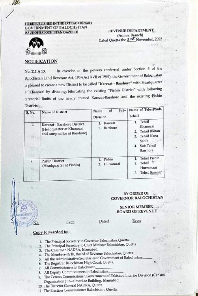 کوئٹہ : بلوچستان کے ضلع پشین کو دو اضلاع میں تقسیم کر دیا گیا صوبے میں اضلاع کی تعداد 36ہوگئی۔ پیر کو گورنر بلوچستان کی ..مزید پڑھیں