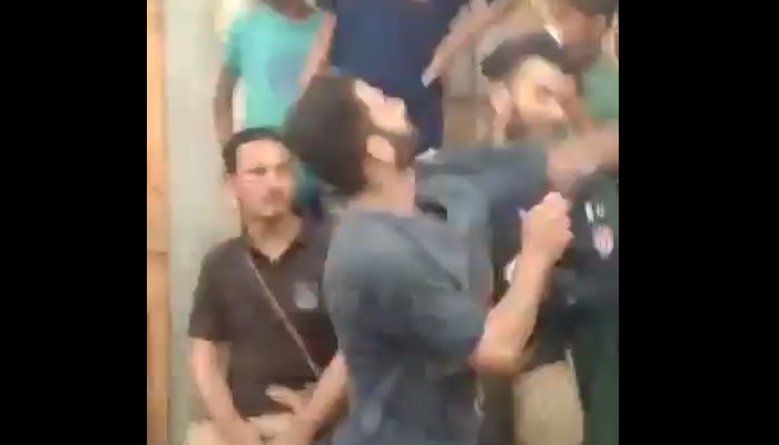 سوشل میڈیا پر وائرل ویڈیو میں ملزمان کو پولیس اہلکار کو تھپڑ مارتے دیکھا جاسکتا ہے— فوٹو: اسکرین شاٹکراچی کے علاقے مومن آباد میں منشیات ..مزید پڑھیں