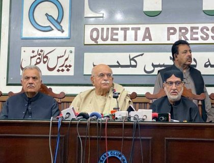 کوئٹہ (انتخاب نیوز) کوئٹہ پریس کلب میں آل پارٹیز کی جانب سے پریس کانفرنس کرتے ہوئے سردار اختر مینگل، محمودخان اچکزئی اور دیگر رہنماﺅں نے ..مزید پڑھیں