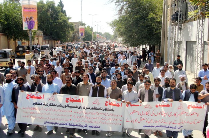 کوئٹہ (آن لائن) گرینڈ ہیلتھ الائنس کے زیر اہتمام بلوچستان میں سرکاری ہسپتالوں کی مجوزہ نجکاری ، کنٹریکٹ پر بھرتیاں اور سہولیات کے فقدان کے ..مزید پڑھیں