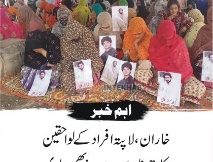 خاران (نامہ نگار)خاران بازار سے سی ٹی ڈی کے ہاتھوں اغواء امان امان اللہ محمد حسنی اور کلی جنگل سے سیکورٹی فورسز کے ہاتھوں جبری ..مزید پڑھیں